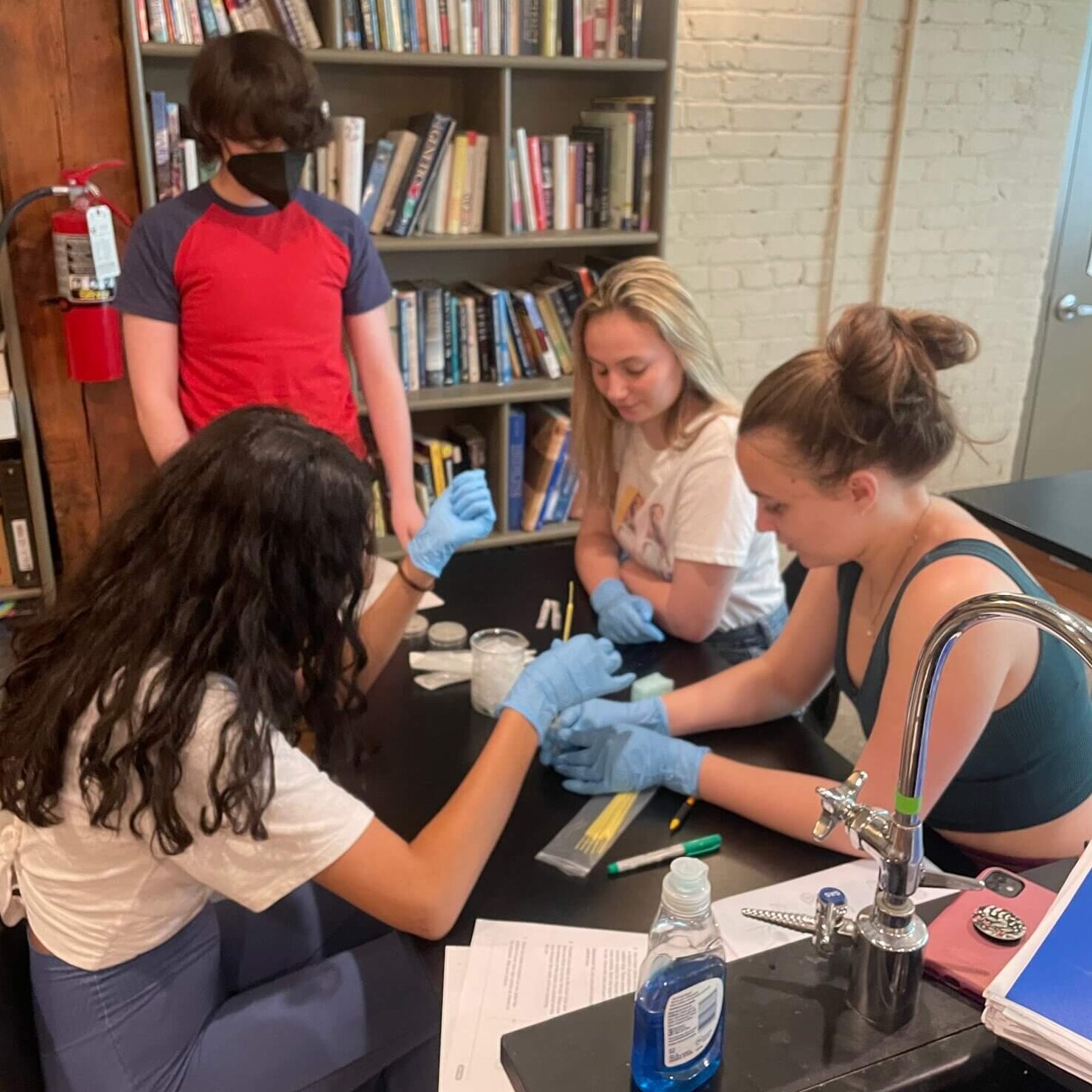 Students in our AP Biology lab course genetically engineered E. coli to express the Green Fluorescent Protein (GFP) from the bioluminescent jellyfish, Aequorea Victoria. By using the same procedure molecular biologists use to create designer proteins, they transformed the bacteria to now glow green under UV light.