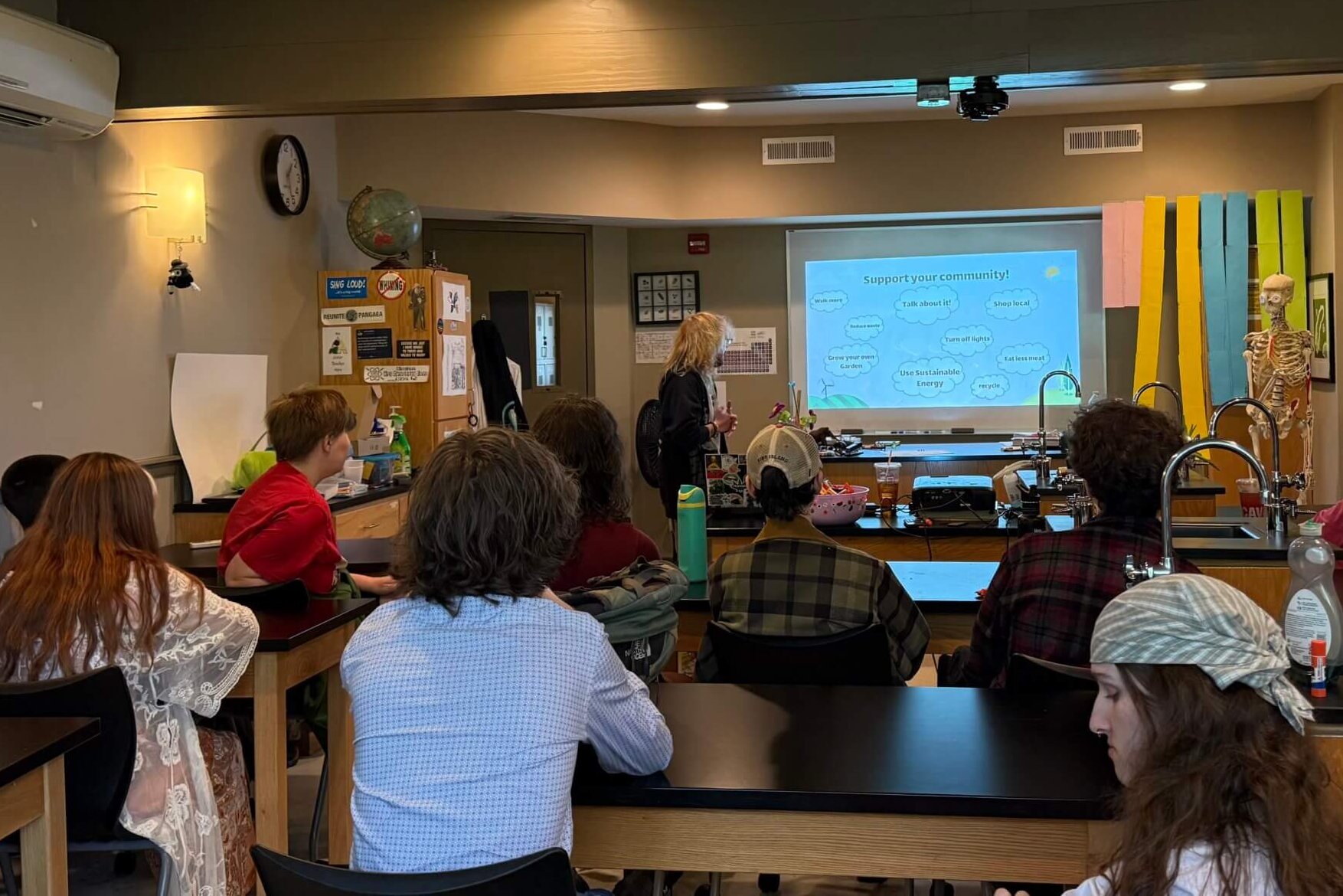 Oliver Herron (’23) came back to CHS to give a presentation on the advocacy project he is currently working on at the University of Mary Washington. He discussed how human produced carbon dioxide affects the Earth’s long and short term carbon cycles and how that leads to changes in our Earth’s temperature and climate. He went on to talk about how the changing climate is now affecting all of us, especially local farmers, and what we can do to be more climate conscious and better support our community.