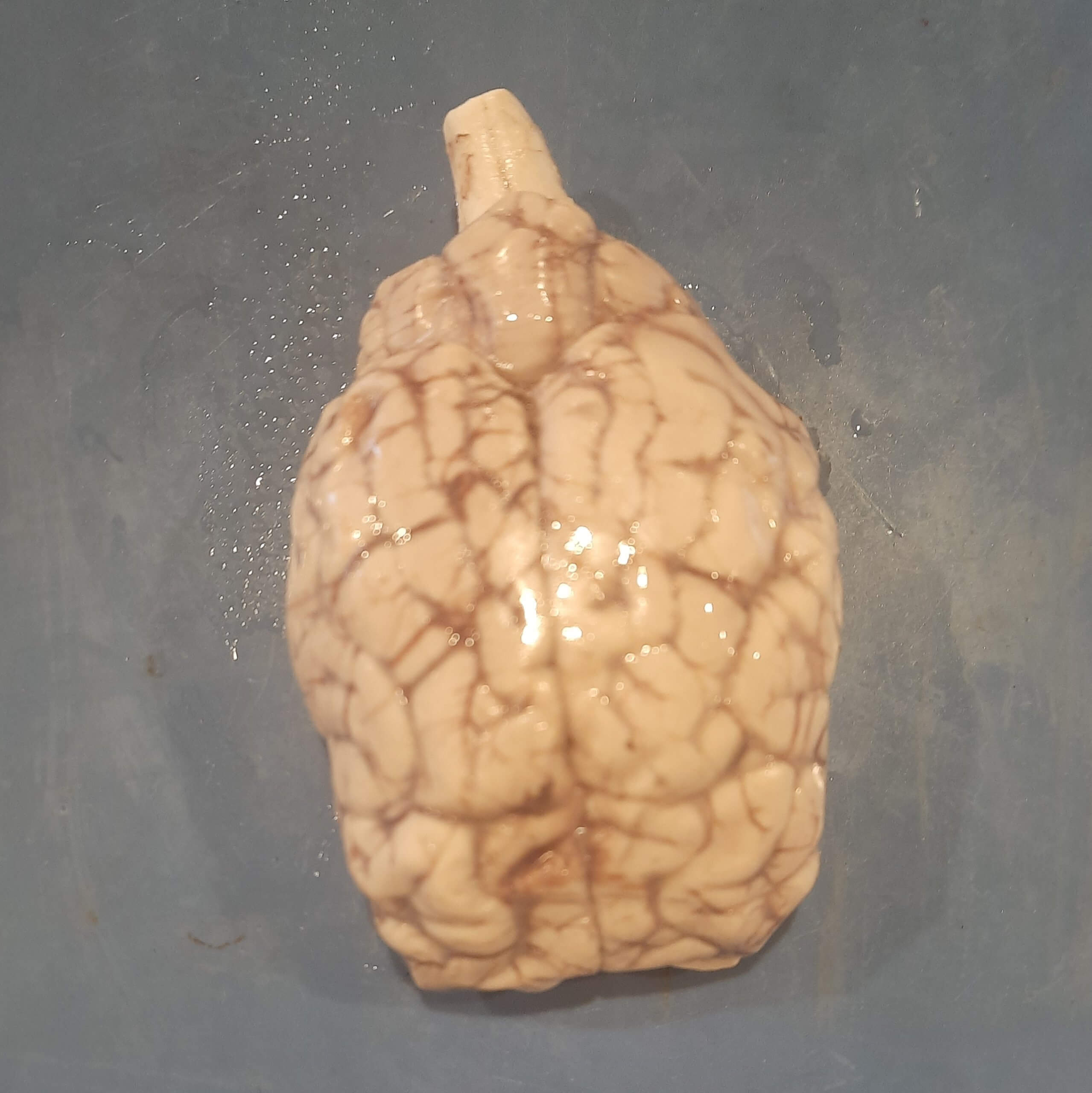 In anatomy class, students dissected sheep brains to explore the intricacies of the mammalian central nervous system (CNS) in three dimensions. The sheep’s brain is large enough to allow for the observation of key features without the need for magnification. This hands-on experience provides students with a deeper understanding of the structure and function of the brain and its role in controlling various bodily functions.