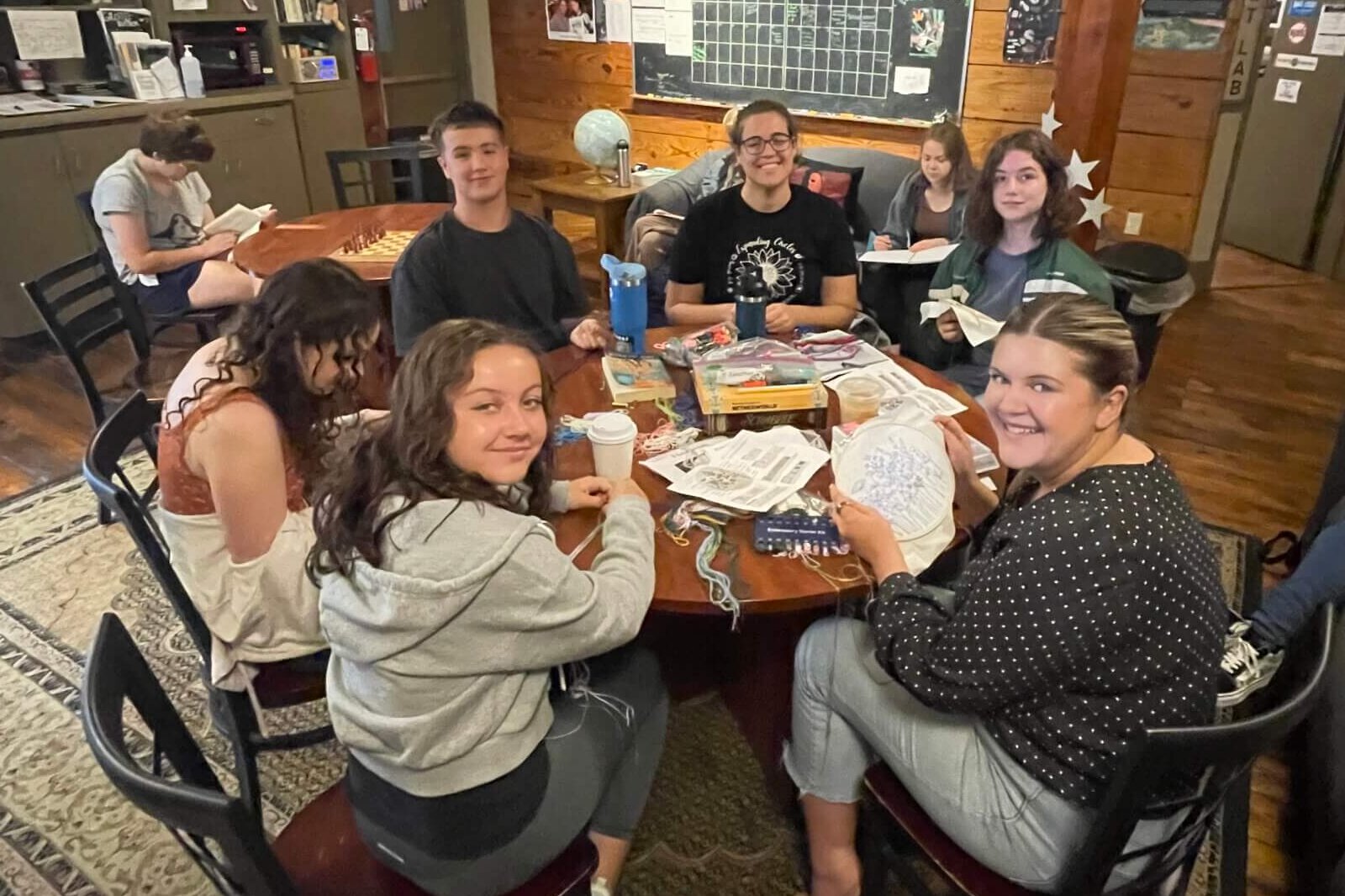 During our Analog Appreciation Days, our students used their technology-free time for frisbee, chess, social deduction games, greenway walks, volleyball, Munchkin games, Diplomacy, sewing, reading, guitar lessons, making smoothies, cooking lunch, gardening, embroidery, collages, card games, scrabble, and visits to downtown museums!