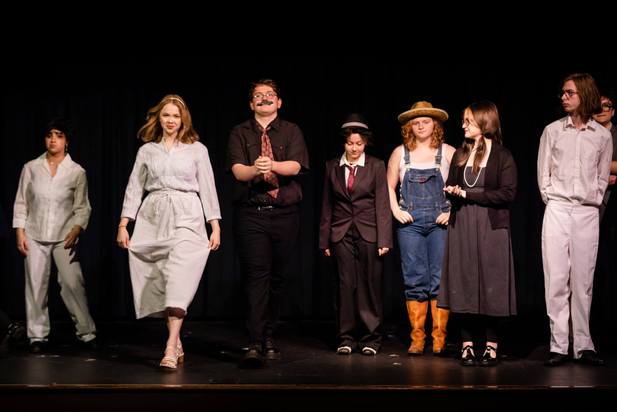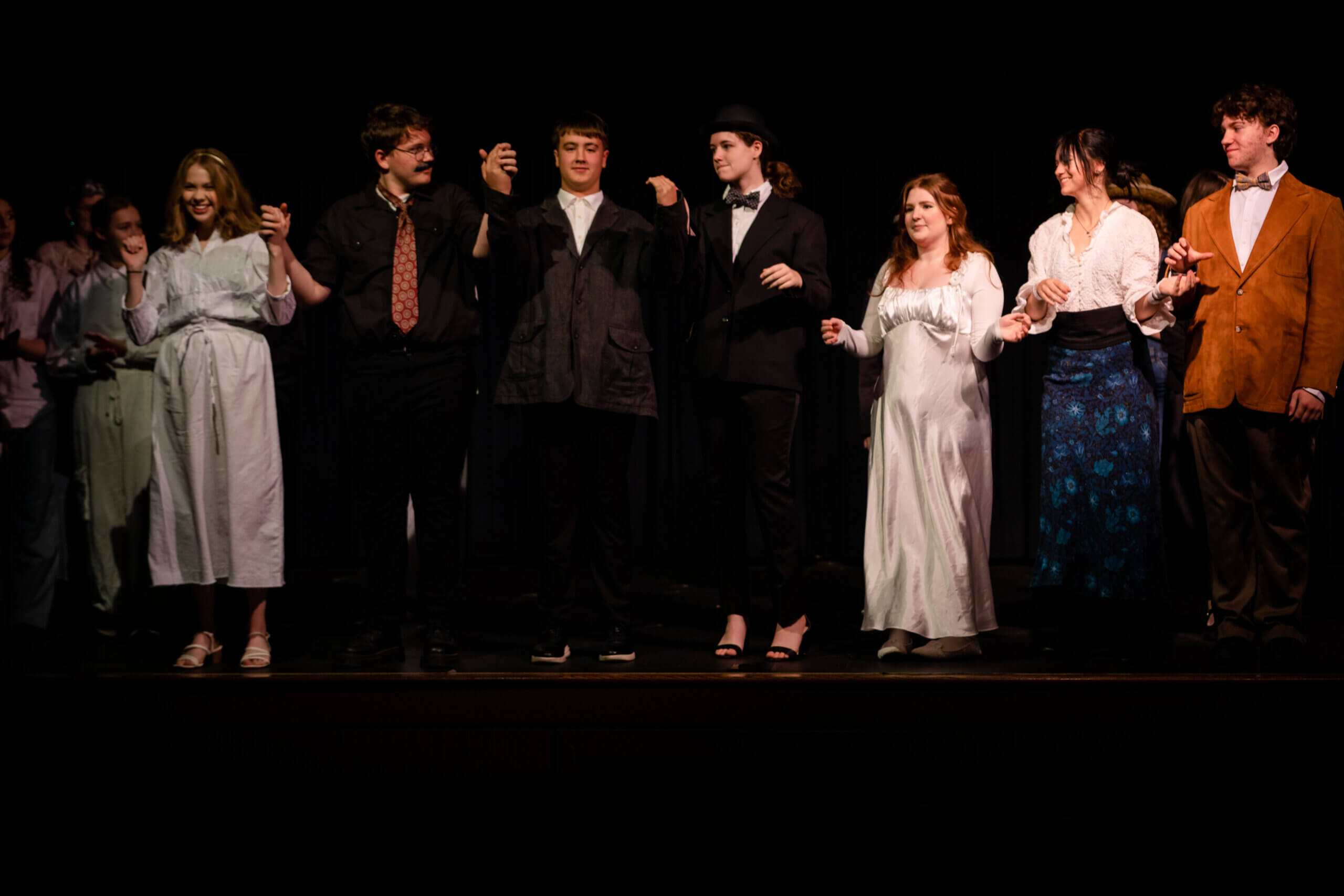 Our students did an amazing job with our heart-felt production of Thornton Wilder’s 1938 masterpiece “Our Town”. This Pulitzer-prize winning play reveals a seemingly idyllic community in early 20th century New Hampshire. It continues to be a poetic and metaphysical examination of life’s events—big and small—those that are fleeting, those that are beautiful, those that are tragic, those that are forever inhabited by the spirits of the departed.