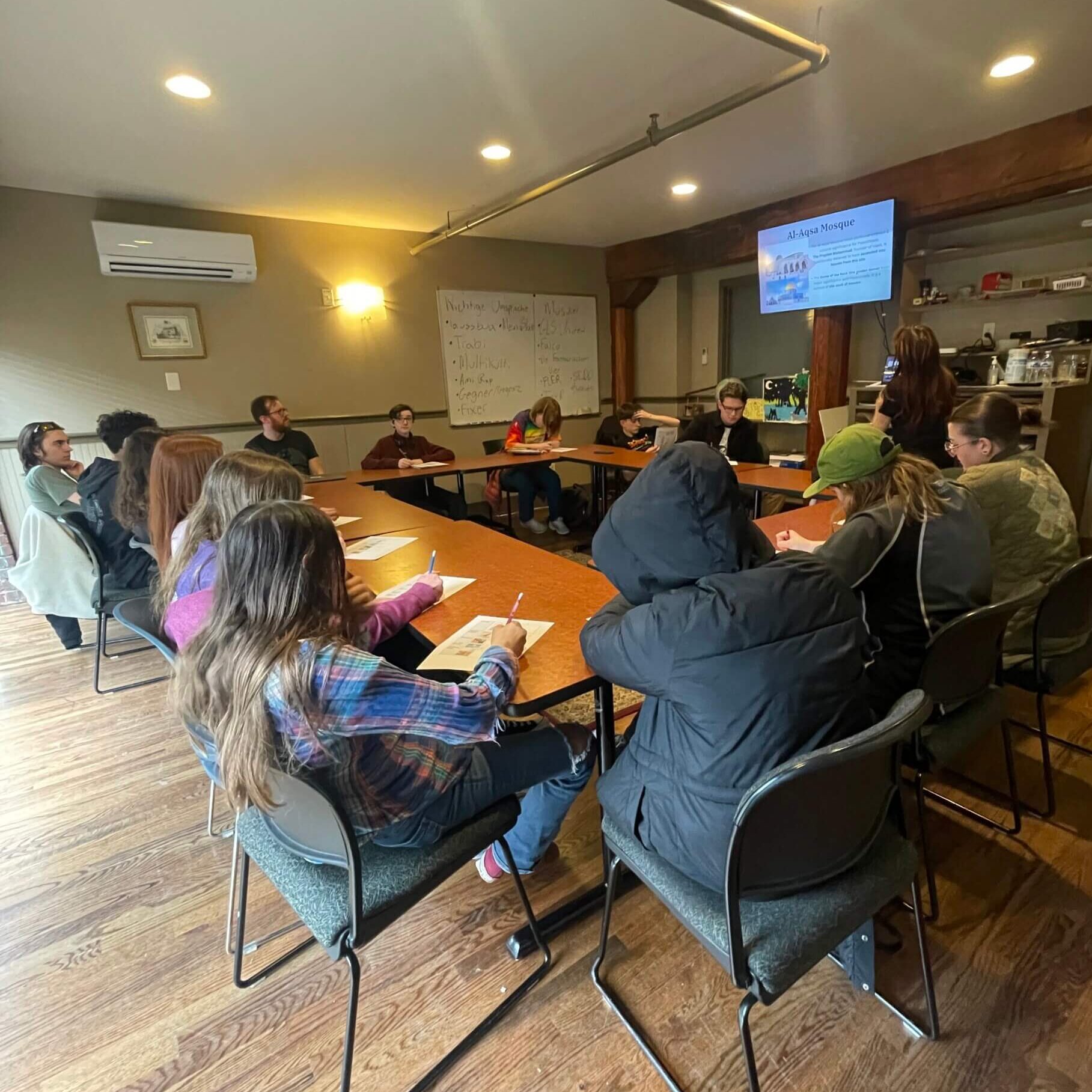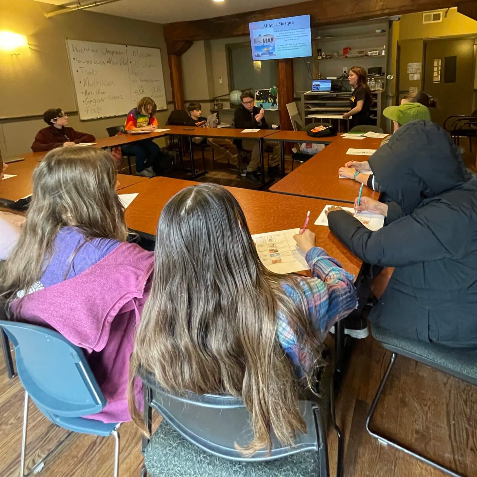 Our students learned about American & German hip-hop, toured a local bakery, created a puzzle, spoke with WWII veterans, took Bachata lessons, tried out some old typewriters, and discussed Palestinian symbols. Below you find photos from these and many more classes.