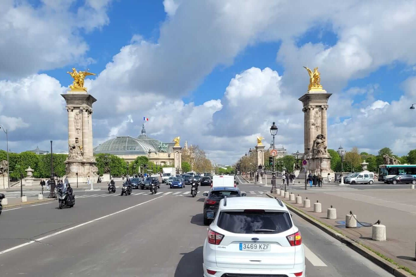 While driving down the Avenue des Champs-Élysées , they saw the historic exhibition hall and museum, Le Grand Palais (on the left in the photo).